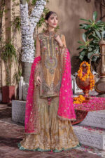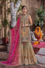 - Gharara: Pure Chiffon (3 layered) embroidered with Gotta